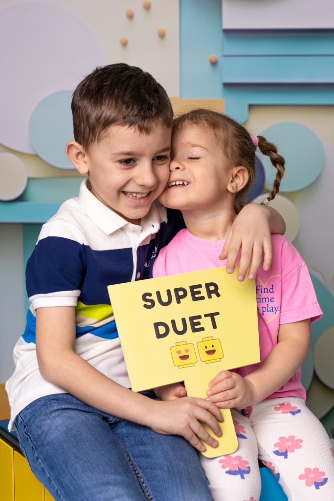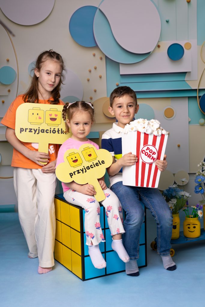 Dzieci uwielbiają zdjęcia z przyjaciółmi – dzięki temu czują się pewniej. Podczas takich zdjeć staram się uchwycić je w naturalnej rozmowie lub dać im delikatny rekwizyt tupu tabliczka z napisem.